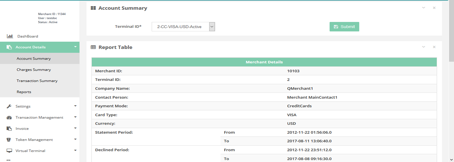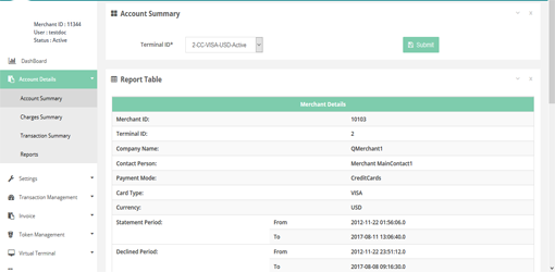 In this page you can see the charges summary per terminal basis.