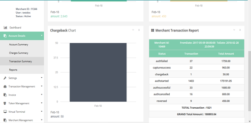 After Login you need to click on Charges Summary section under Account Details tab in the left navigation bar of Merchant’s back office.