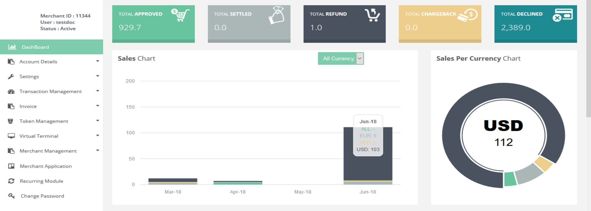 After Login you need to click on Dashboard section in the left navigation bar of Merchant’s back office.