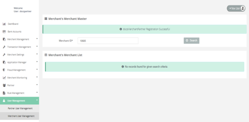 After Login, you need to click on the User Management section in the left navigation panel of Partner's back office and then you need to click on "Add New User" button which is situated at rightmost top of the search filter.